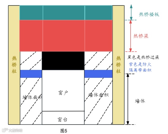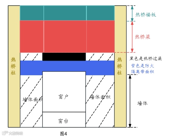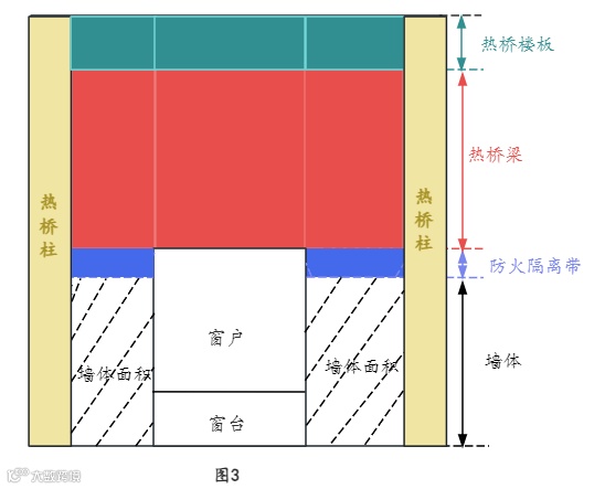 ④热桥楼板面积:原热桥楼板面积减去与窗重叠部分及热桥柱重叠部分的面积;