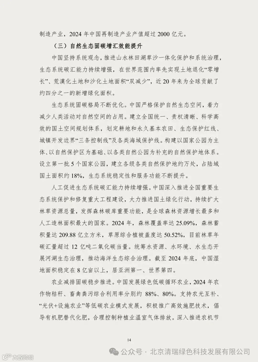 生态固碳:森林覆盖率25.09%,林草年碳汇超12亿吨二氧化碳当量,湿地面积居亚洲第一。