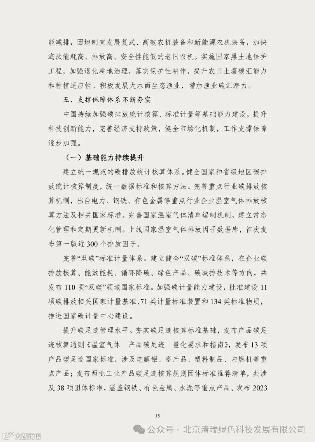基础能力:建立统一碳排放统计核算体系,发布110项“双碳”国家标准。