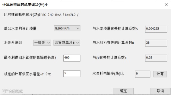 ·水泵设置:冷热源输送介质为水等液体时需配置水泵,能耗计算核心关联耗电输热比,软件支持耗电输热比手动输入与智能计算。