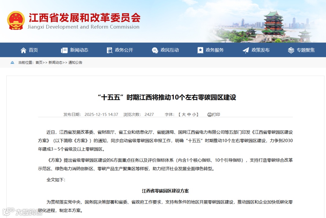 “十五五”时期江西将推动10个左右零碳园区建设