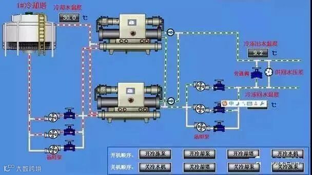 一般,冷水泵和冷却水泵的台数应和制冷主机一一对应,并考虑一台备用。补水泵一般按照一用一备的原则选取,以保证系统可靠的补水。