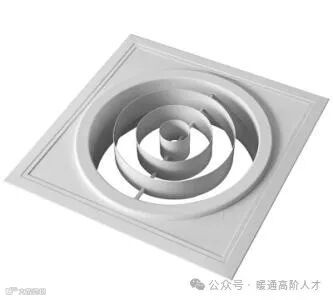 旋流风口送出旋转射流,具有诱导比大,风速衰减快的特点,在空调通风系统中可用作大风量,大温差送风以减少风口数量,安装在天花板或顶棚上,可用于3米以内低空间,也可用二种高度大面积送风,高度甚至可达10米以上。