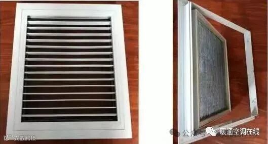 单层百叶风口可调上下风向,回风口可与风口过滤网合用,节片角度可以调节。固定式过滤网在清洗时可由滑道上取出过滤网,清洗后再从滑道推入后继续使用。
