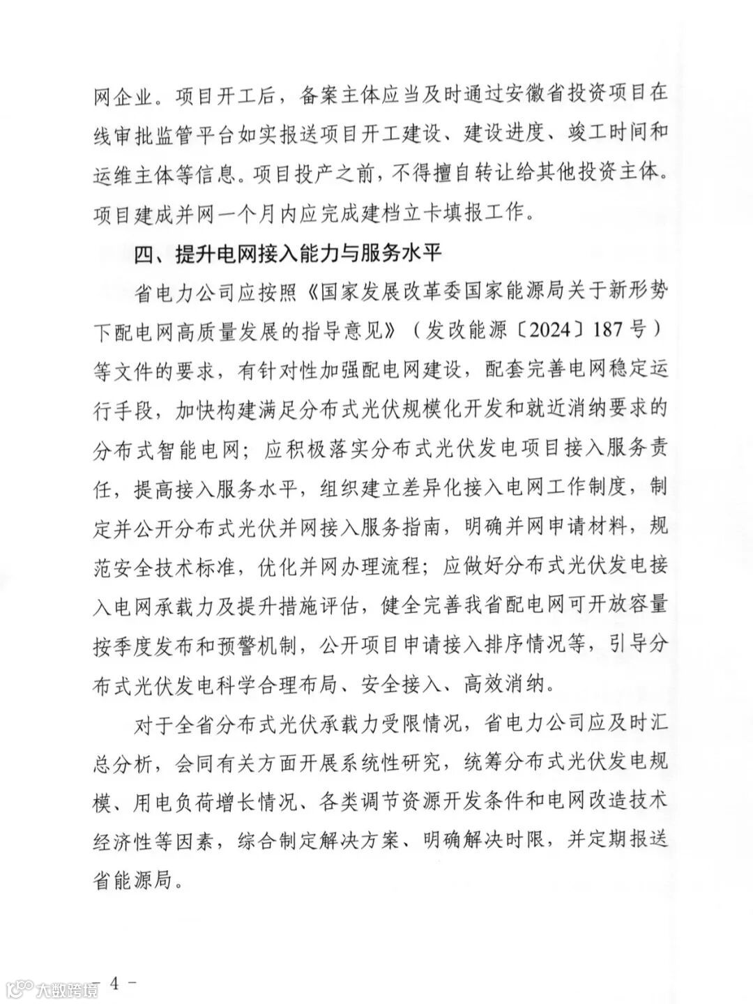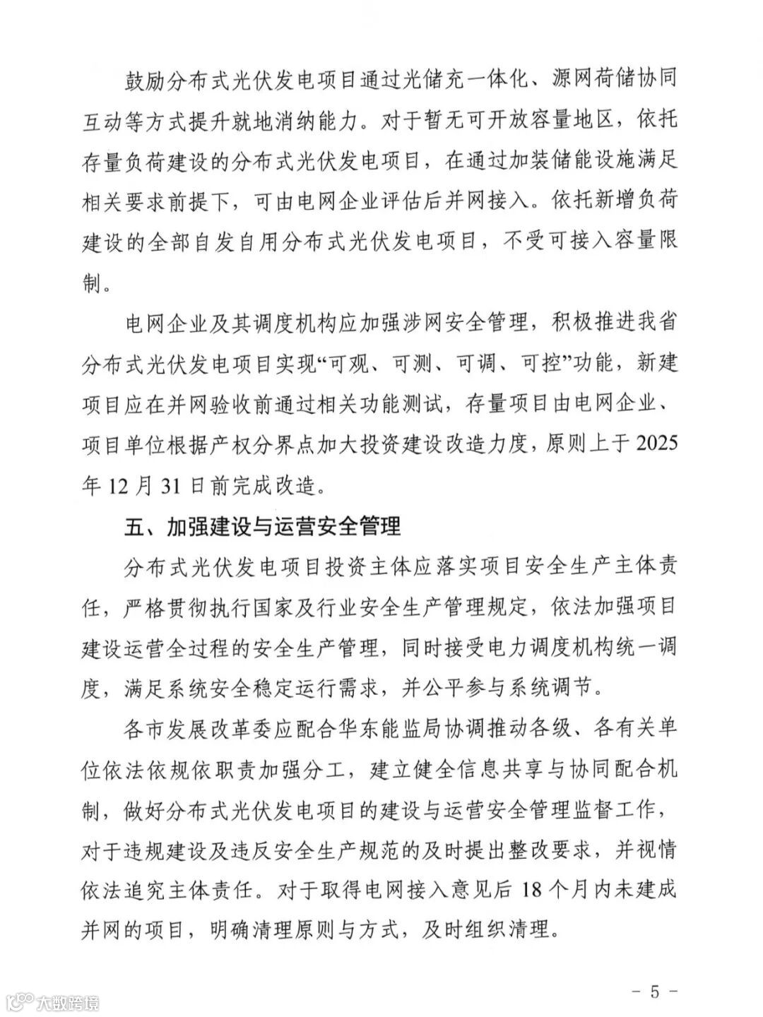 在“四可”功能改造方面,新建项目应在并网验收前通过相关功能测试,存量项目由电网企业、项目单位根据产权分界点加大投资建设改造力度,原则上于2025年12月31日前完成改造。