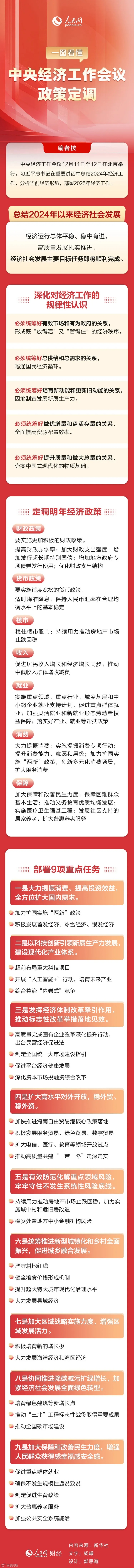 会议强调,做好明年经济工作,要以习近平新时代中国特色社会主义思想为指导,全面贯彻落实党的二十大和二十届二中、三中全会精神,坚持稳中求进工作总基调,完整准确全面贯彻新发展理念,加快构建新发展格局,扎实推动高质量发展,进一步全面深化改革,扩大高水平对外开放,建设现代化产业体系,更好统筹发展和安全,实施更加积极有为的宏观政策,扩大国内需求,推动科技创新和产业创新融合发展,稳住楼市股市,防范化解重点领域风险和外部冲击,稳定预期、激发活力,推动经济持续回升向好,不断提高人民生活水平,保持社会和谐稳定,高质量完成“十四五”规划目标任务,为实现“十五五”良好开局打牢基础。