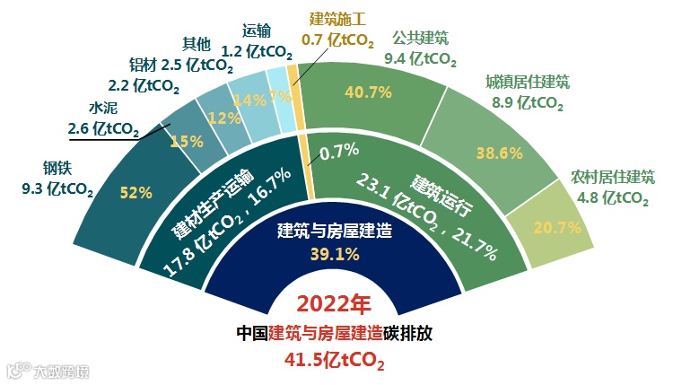 2022年全国建筑与房屋建造碳排放总量及占比情况