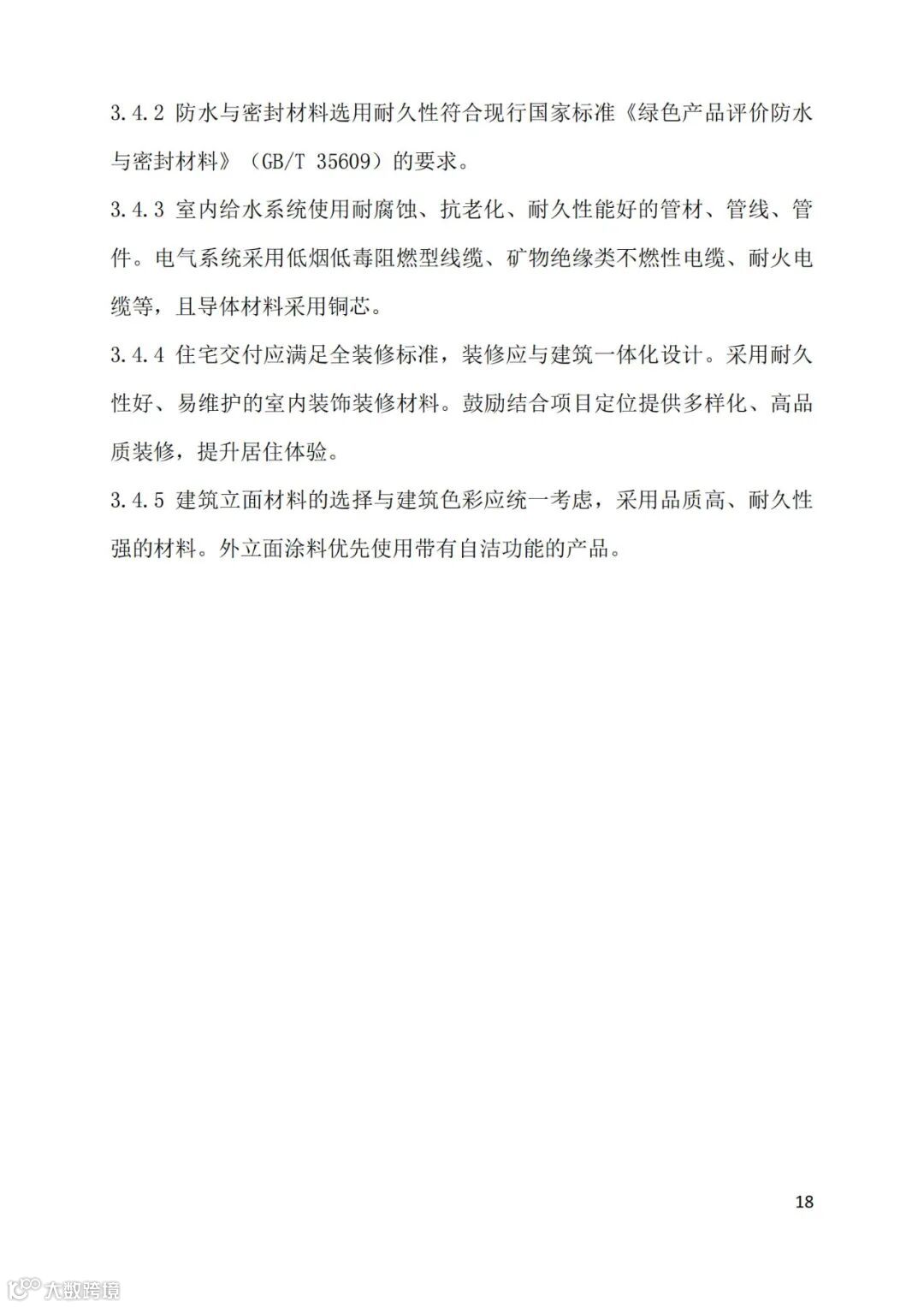 “好房子”离不开技术赋能。“好房子”需要好材料。《导则》要求绿色建材应用比例不低于70%,其中预拌混凝土、防水卷材、防水涂料应100%使用绿色建材,不得使用低品质涂料和面砖等材料。鼓励住区内道路、园林绿化等公共设施建设所用路面砖、植草砖、道路无机料、路缘石等使用健康安全的建筑垃圾再生产品。