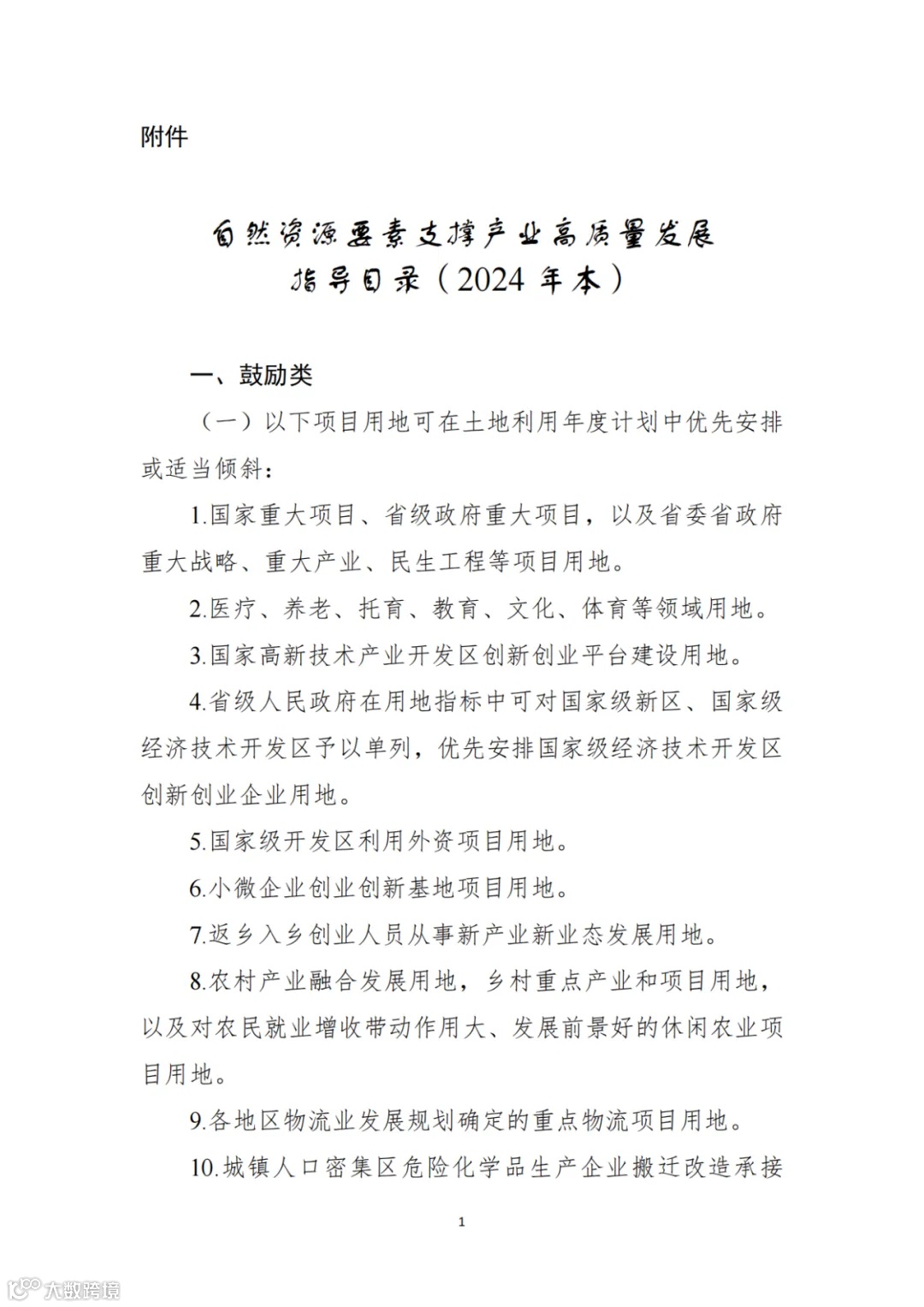自然资源部 国家发展和改革委员会 国家林业和草原局关于印发《自然资源要素支撑产业高质量发展指导目录(2024年本)》的通知
