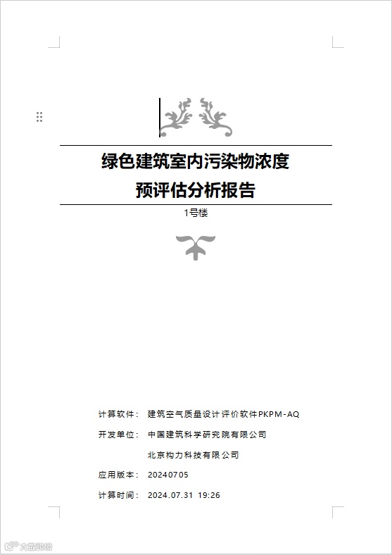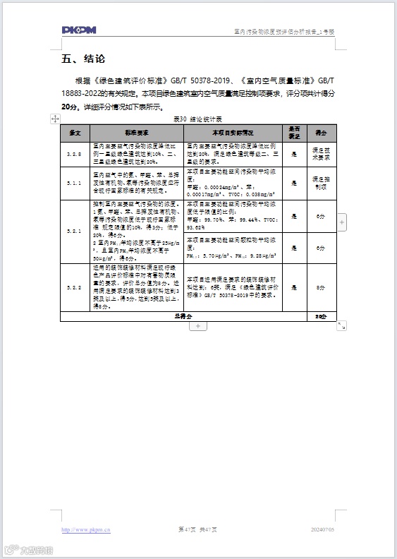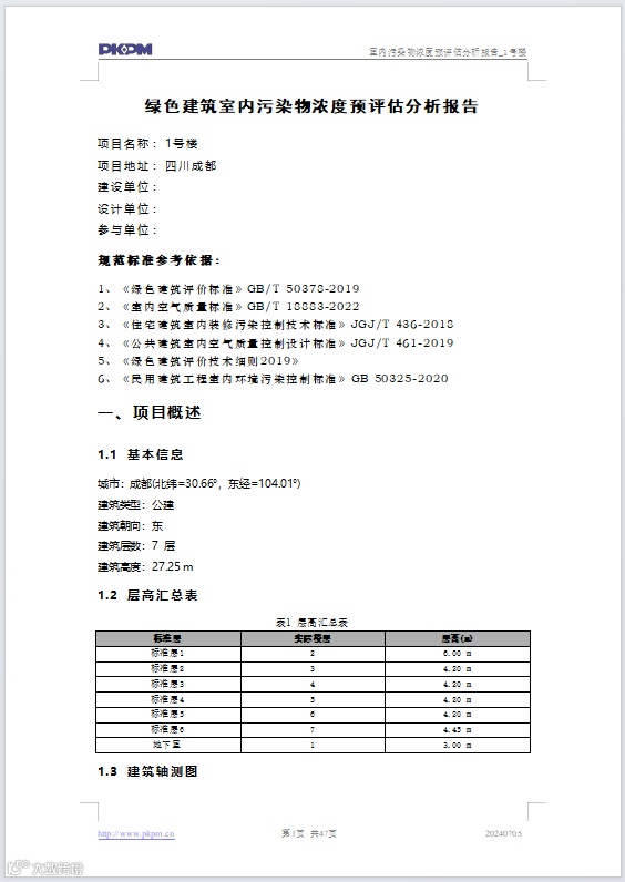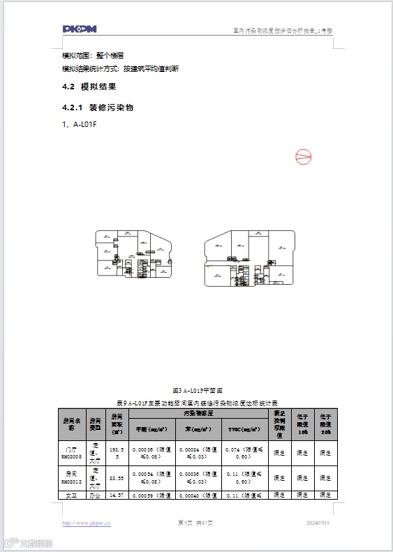 计算完成后,PKPM-GMA软件根据标准自动对标评分,输出可溯源、满足审查要求的《室内污染物浓度预评估分析报告》。