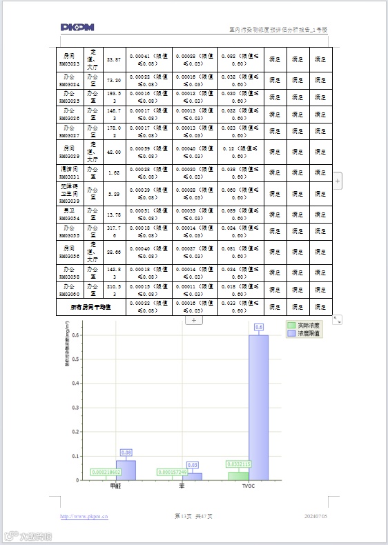 8、自动生成可溯源的《室内污染物浓度预分析报告书》