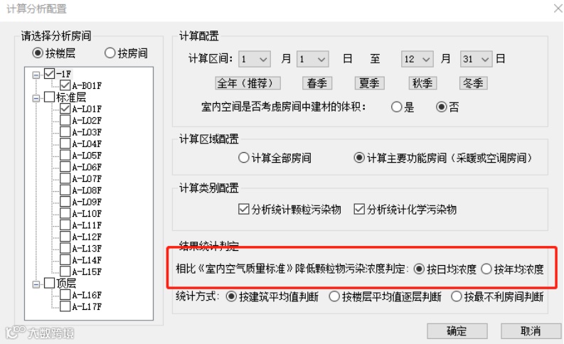 7、可对《室内空气质量标准》降低浓度判定方式选择:按日均浓度、按年均浓度