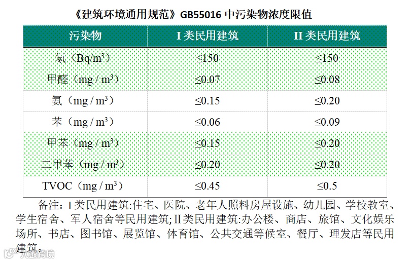 ▪ 满足《建筑环境通用规范》GB55016浓度为下表要求: