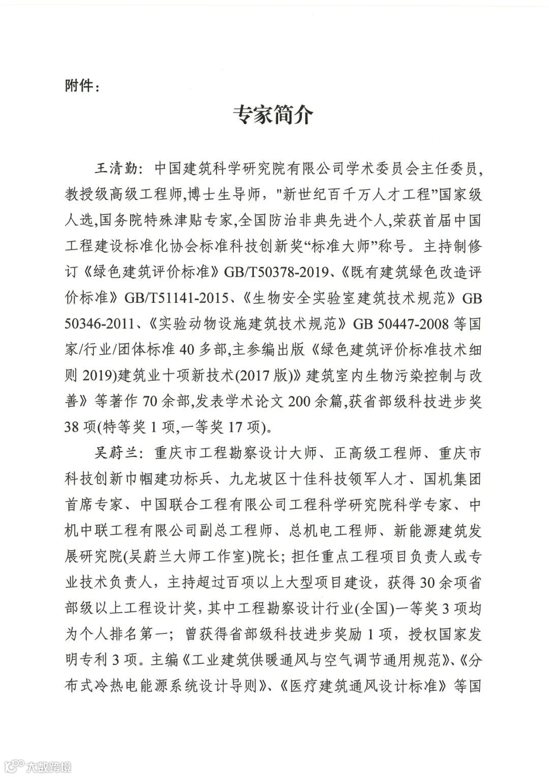 王清勤:中国建筑科学研究院有限公司学术委员会主任委员,教授级高级工程师,博士生导师,"新世纪百千万人才工程”国家级人选,国务院特殊津贴专家,全国防治非典先进个人,荣获首届中国工程建设标准化协会标准科技创新奖“标准大师”称号。主持制修订《绿色建筑评价标准》GB/T50378-2019、《既有建筑绿色改造评价标准》GB/T51141-2015、《生物安全实验室建筑技术规范》GB 50346-2011、《实验动物设施建筑技术规范》GB 50447-2008等国家/行业/团体标准40多部,主参编出版《绿色建筑评价标准技术细则2019)建筑业十项新技术(2017版)》建筑室内生物污染控制与改善》等著作70余部,发表学术论文200余篇,获省部级科技进步奖38项(特等奖1项,一等奖17项)。