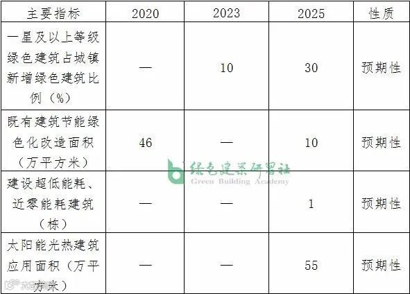 (1)绿色建筑发展,到2025年,全市城镇新增绿色建筑占新建民用建筑比例达到100%,其中一星级及以上绿色建筑占比超过30%,加强绿色建筑竣工验收及运行监管。