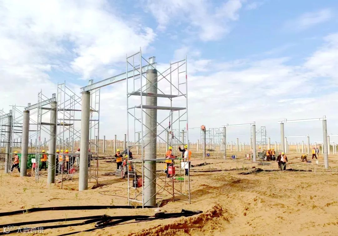 蒙西库布其沙漠200万千瓦光伏治沙项目施工现场