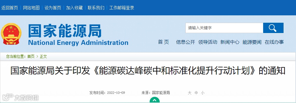 10月9日,国家能源局印发《能源碳达峰碳中和标准化提升行动计划》。