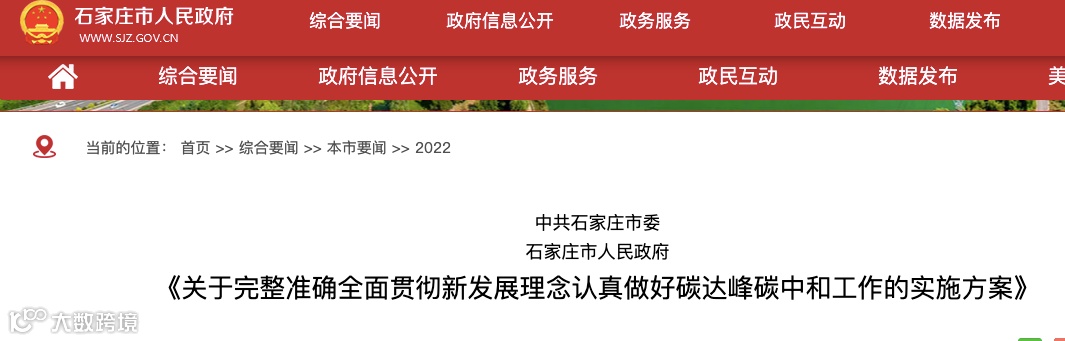 市委石家庄市人民政府发布《关于完整准确全面贯彻新发展理念认真做好碳达峰碳中和工作的实施方案》,方案指出: