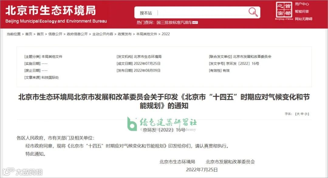 关于印发《北京市“十四五”时期应对气候变化和节能规划》的通知