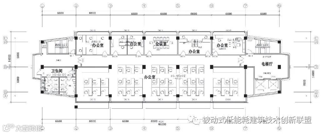 图1 邯郸办公区办公南楼标准层平面图(单位:mm)