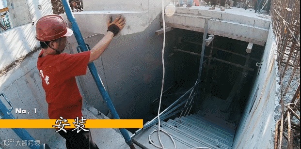 在释吊后,根据休息平台及其侧墙上的左右、内外标高位置控制线进行安装。