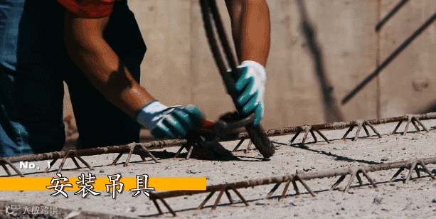 第一步:根据设计要求,在叠合楼板吊点位置安装好吊具。叠合楼板起吊前要检查吊具是否安装牢固。