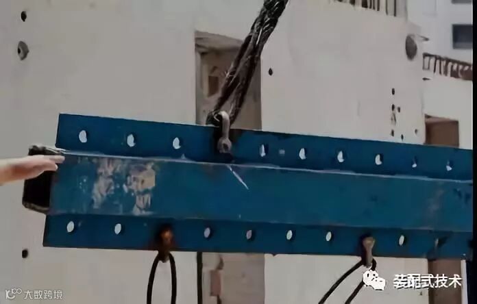 吊装钢梁的制作是由专业厂家进行的,它在制作前需要对吊装钢梁的受力进行核算,它的长度是根据不用构件的尺寸进行设计的。另外,吊装钢梁的上下有两排孔洞。