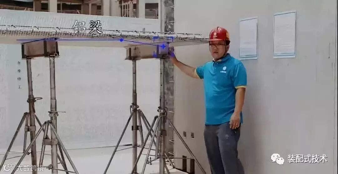 第二,应在叠合板上施放内外控制线,在悬挑板两侧下层墙体上口施放左右位置控制线。