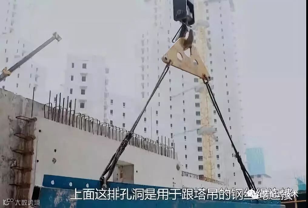 上面一排孔洞是用于跟塔吊的钢丝绳连接,下面一排孔洞是根据构件不同的吊钉位置进行连接。