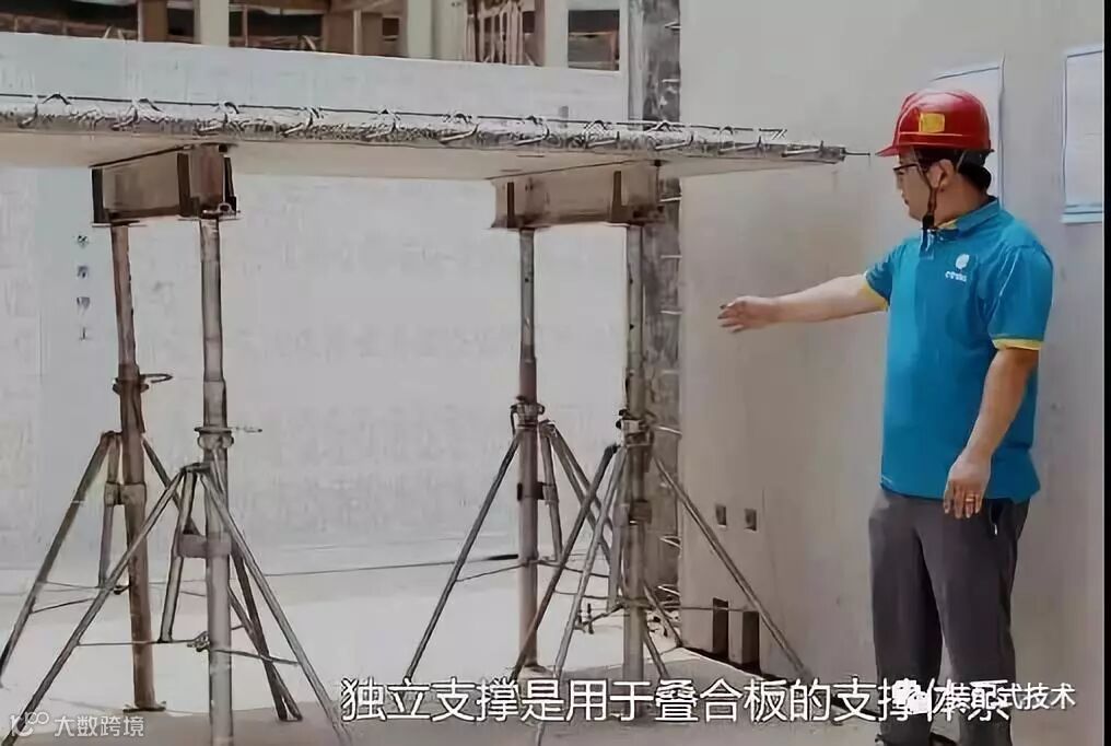 叠合楼板的安装和现浇楼板施工相比较,它的优势有:现浇楼板采用满堂红的支撑体系。而叠合楼板采用更加便捷和快捷的独立支撑体系。另外,叠合楼板节省了大量的顶板模板的施工任务和钢筋绑扎的施工任务,从而提升了施工效率。