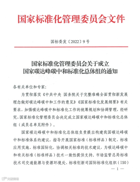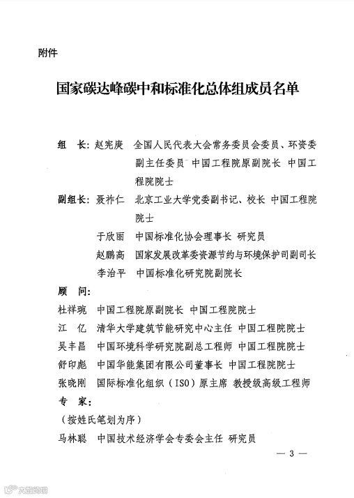 43人!国家碳达峰碳中和标准化总体组成立