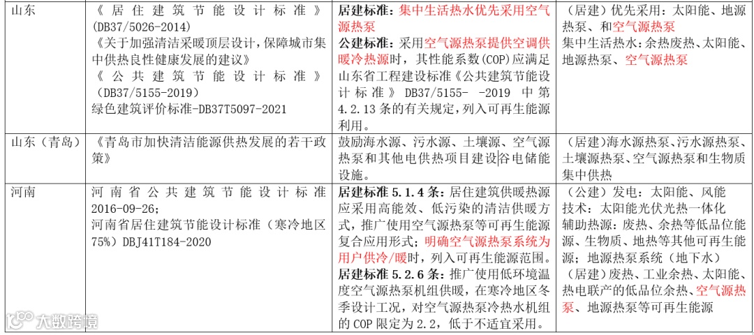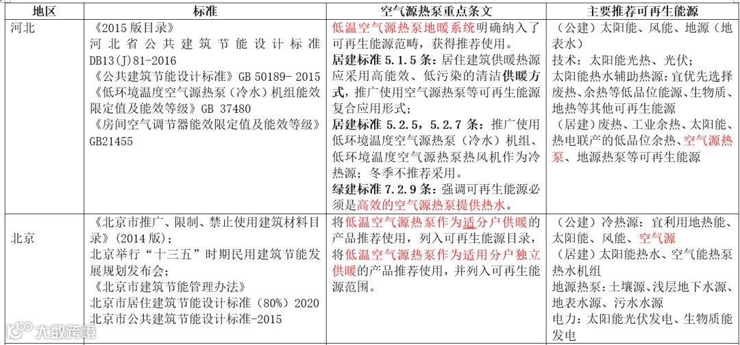 (2)对于新兴空气源热泵技术,空气源热泵技术用于建筑采暖和热水都算可再生能源的主要集中在: