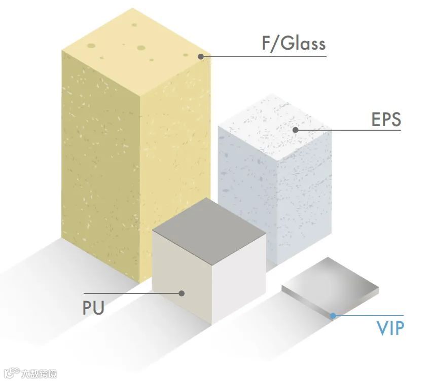 不同保温材料达到同种保温性能下的厚度对比