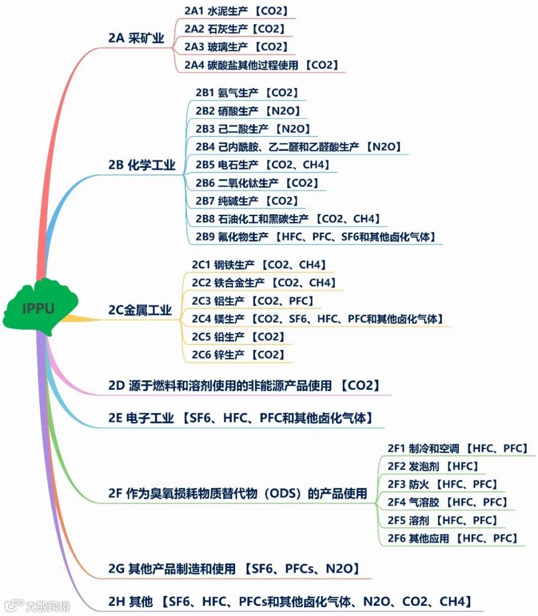 图4 工业过程和产品使用(IPPU)部门温室气体排放源及气体