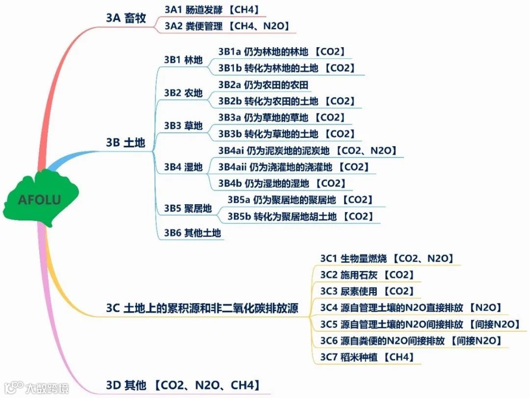 图5 农业、林业和其他土地利用(AFLOU)部门温室气体排放源及气体