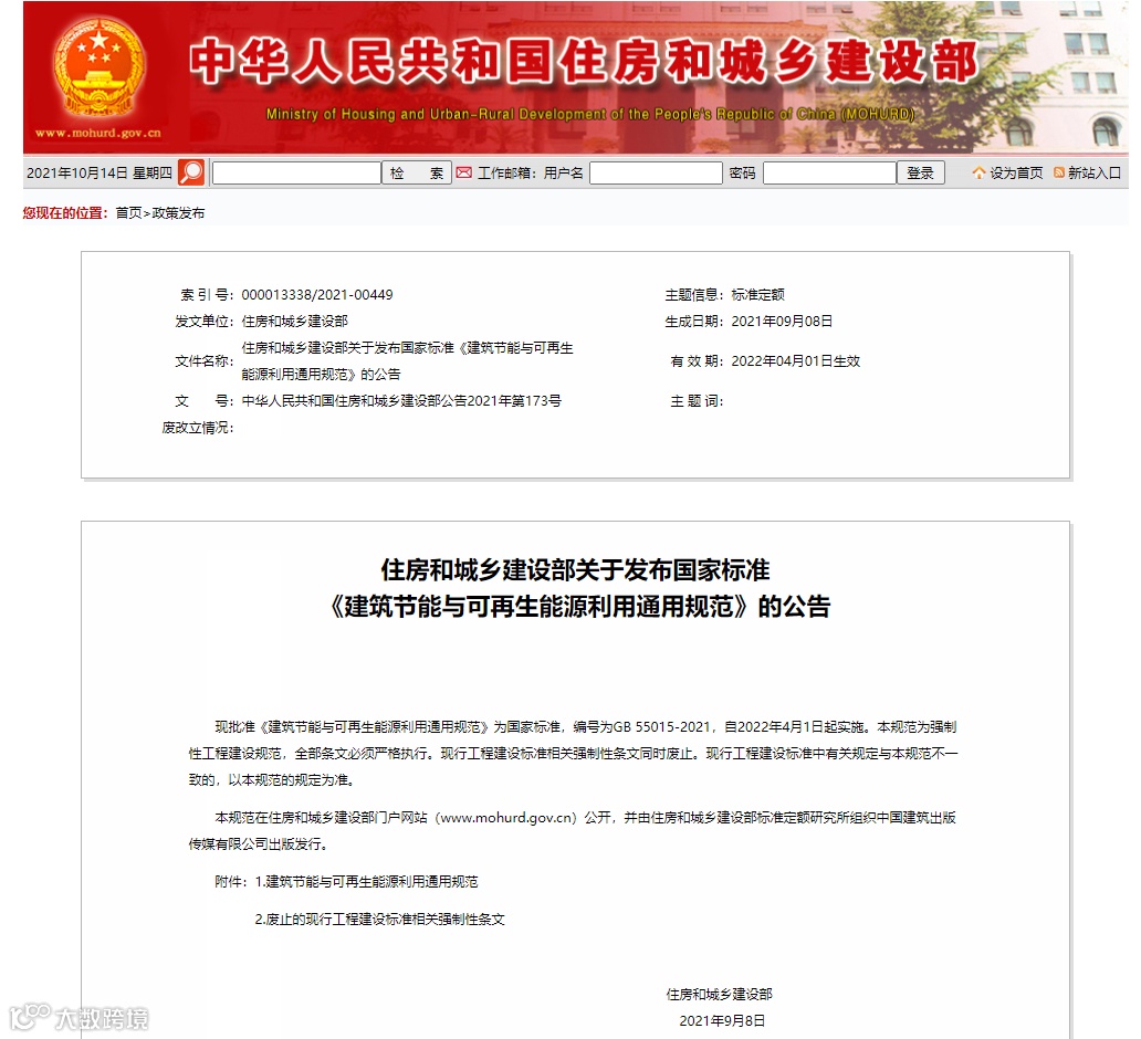 图1 建筑节能与可再生能源通用规范建设部发文公告