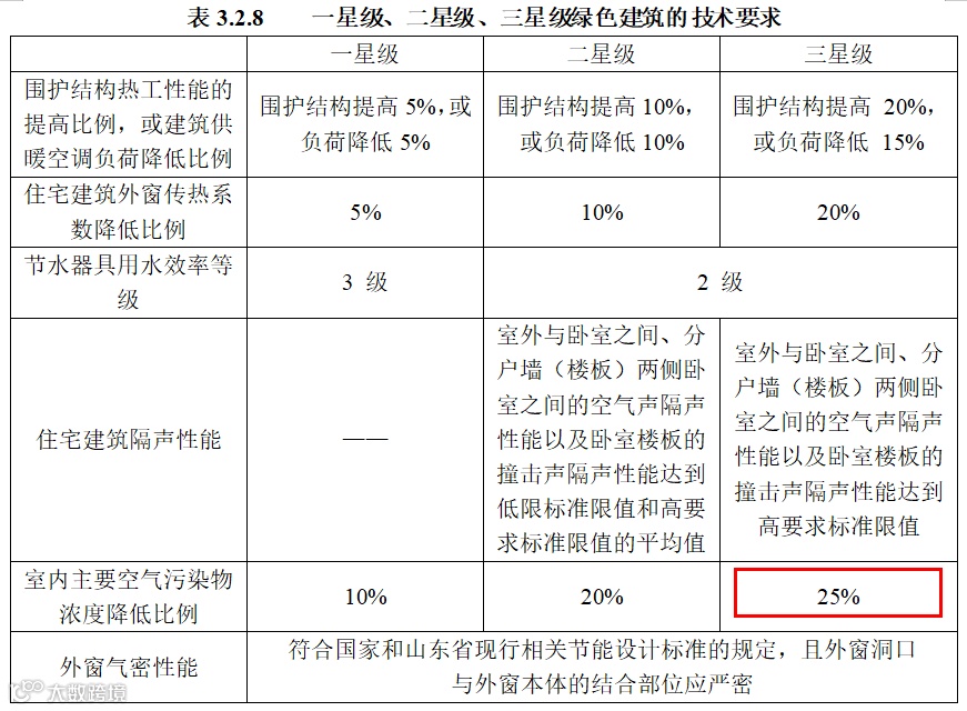 3、三星级技术要求空气污染物浓度降低比例提高到25%