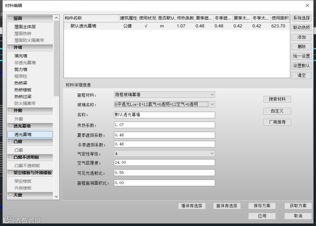 图5:材料编辑-幕墙选型
