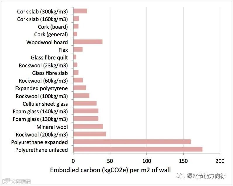 这里可以看到,聚氨酯一类保温材料,高密度岩棉,都是高碳排放的材料,他们的加工过程碳排放确实多。