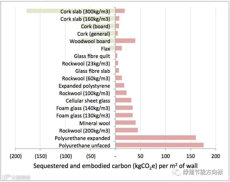 最后的结果还是表明,化学建材保温材料,岩棉、矿棉这类材料的碳排放还是居高的。而软木保温材料却成了最低碳的保温材料。