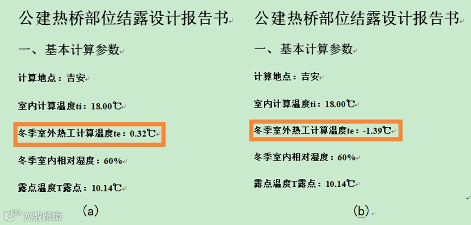 结露计算中输出的“室外温度te”不是固定值,同一地区、选择不同的材料类型及材料厚度,冬季室外热工计算温度te取值不一定一样,与构造的热惰性指标D的取值有关。