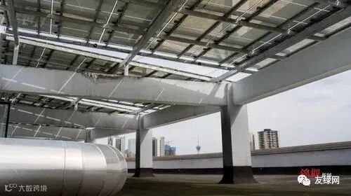 整个大楼的副楼屋顶还变成多个园林小品形成的花园。这样的“绿景”也加强了大楼的隔热、隔声效果,起到了吸附飘尘和产生氧气的作用。