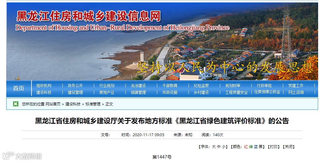 黑龙江省住房和城乡建设厅关于发布地方标准《黑龙江省绿色建筑评价标准》的公告