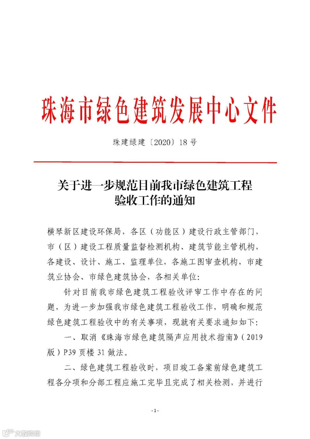 【政策通知】珠海市:关于进一步规范目前我市绿色建筑工程验收工作的通知