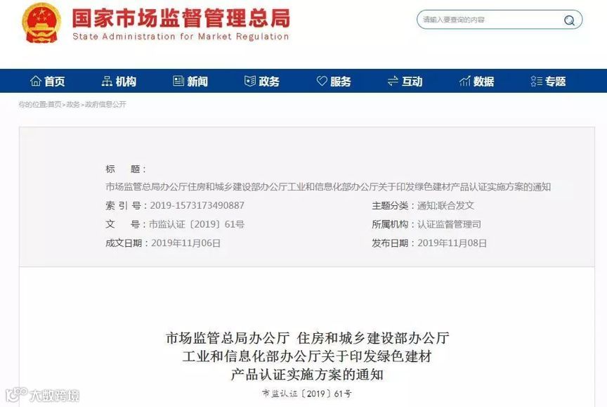 为贯彻落实《质检总局 住房城乡建设部 工业和信息化部 国家认监委 国家标准委关于推动绿色建材产品标准、认证、标识工作的指导意见》,推进绿色建材产品认证工作,市场监管总局、住房和城乡建设部、工业和信息化部制定了《绿色建材产品认证实施方案》。