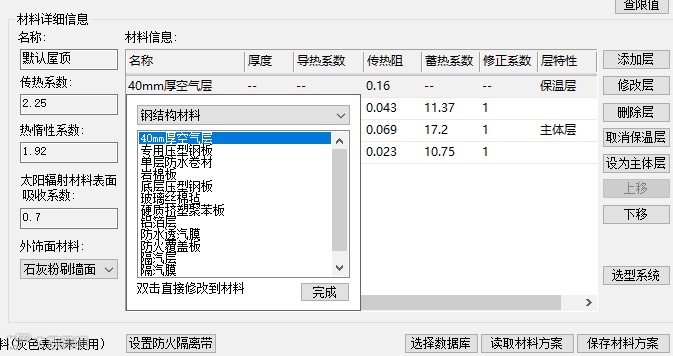 2. 或者材料编辑对话框-选择数据库-选择《民用建筑热工设计规范》(GB50176-2016)数据库;