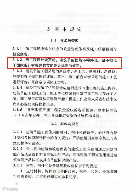 3.1.2:当工程设计变更时,建筑节能性能不得降低,且不得低于国家现行有关建筑节能设计标准的规定。
