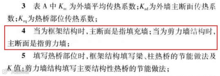 在山东、辽宁等地居住建筑节能设计标准附录A当中,对于主断面在不同结构体系下的计算方法均给出了详细的说明:框架结构,主断面为主体墙传热系数;剪力墙结构,主断面为剪力墙传热系数。