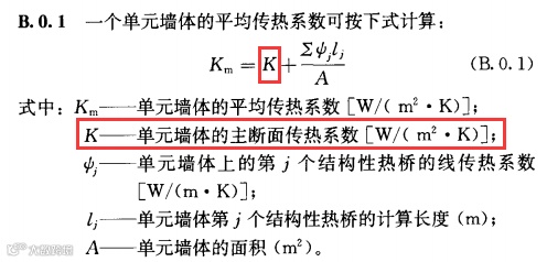 最早在2008年黑龙江居住建筑节能设计标准和2010年行业标准《严寒和寒冷地区居住建筑节能设计标准》JGJ26-2010中,对于外墙平均传热系数,提出采用二维线性传热系数计算方法。公式当中,包含单元墙体主断面传热系数,加上各节点线性热桥引起的线传热系数的总和,具体算法如下: