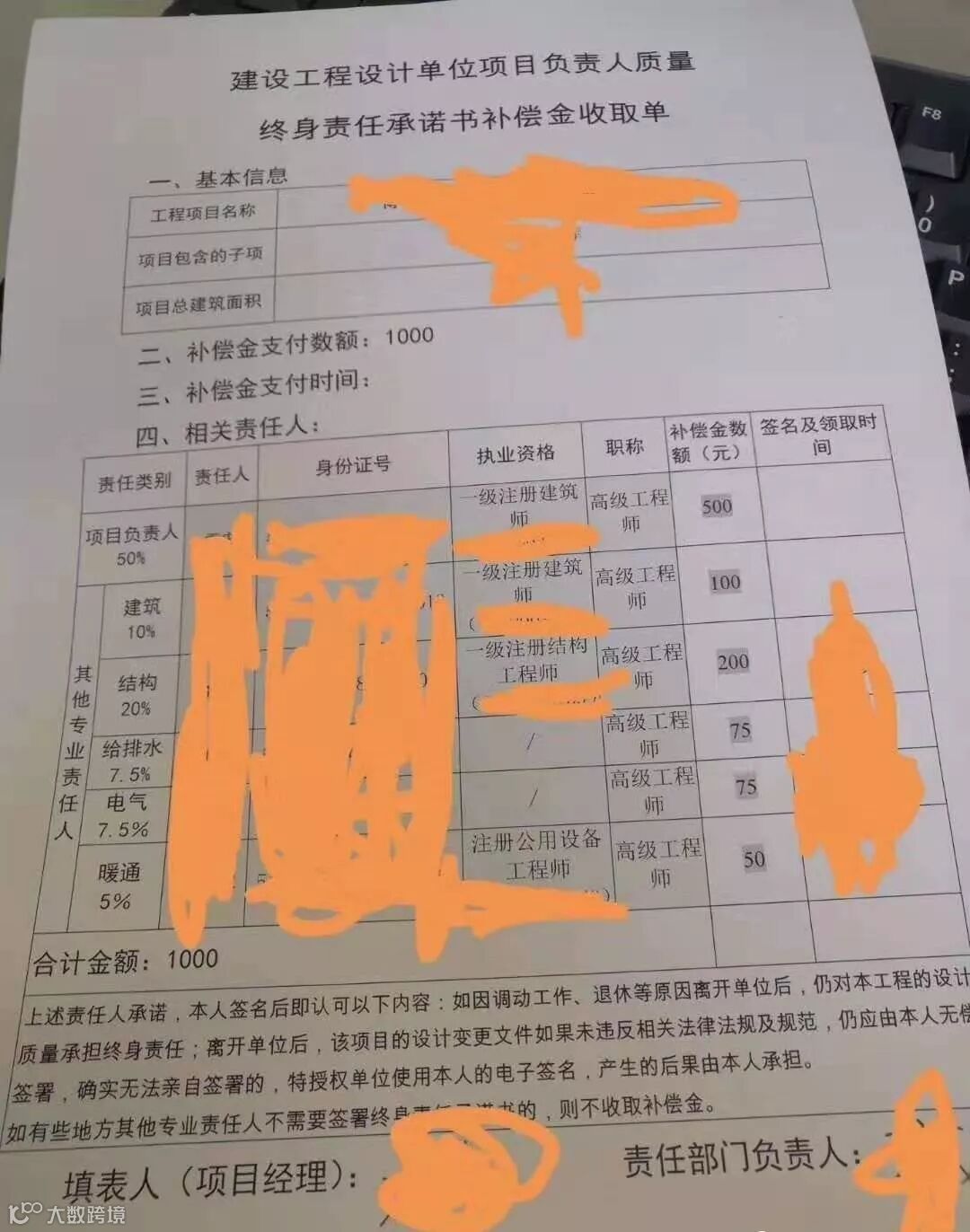 昨天,建筑师刘工把上图发给我,问我怎么看?我瞅着这图,终身责任承诺书补偿金收取单,第一反应,好啊,终身负责还有补偿金拿。这公司,有良心。